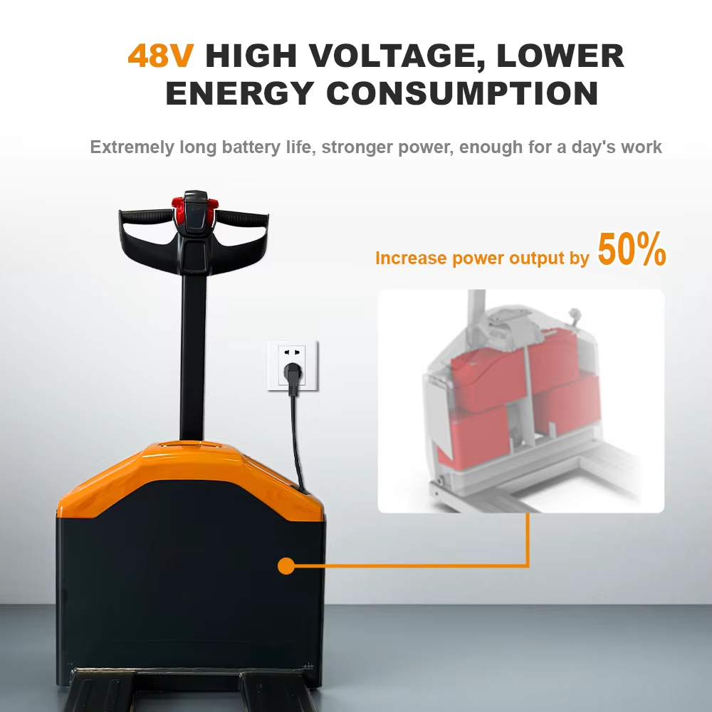The stable 48V controller system increases the reliability of the entire vehicle operation, and the metal battery cover is sturdy and durable, preventing goods from falling and being damaged. At the same time, it is equipped with large-diameter polyurethane drive wheels, which are wear-resistant and durable, and can cope with more working conditions.